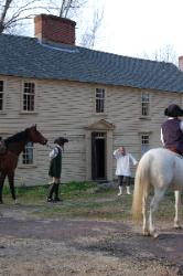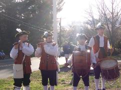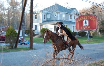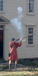 We hold ceremonies and fire musket vollies at each of the four stops, and at the Faulkner Homestead in South Acton, Faulkner himself stumbles out in his nightclothes and manages (hopefully) to fire his musket 3 times to spread the alarm to his troops, whereupon the volley is echoed by another musket some distance away, followed by yet another even further off, demonstrating how the alarm was spread across town.